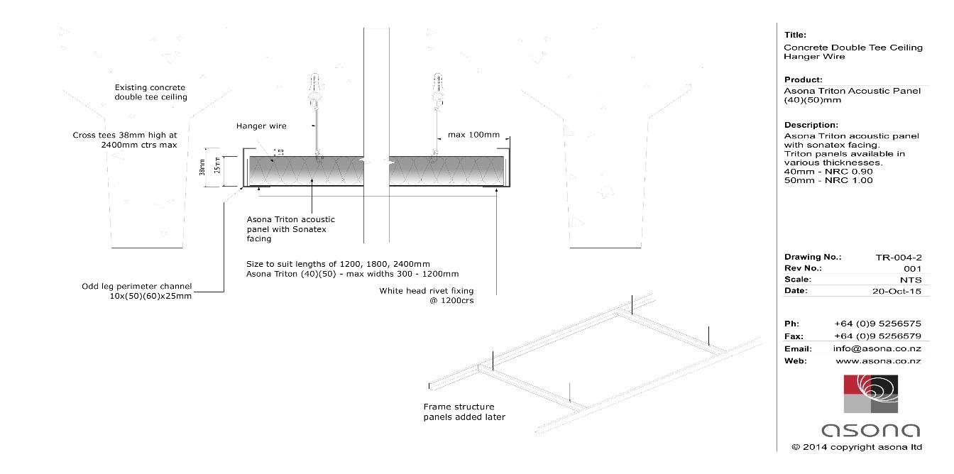 Triton Avant 15™ is a made in NZ acoustic ceiling panel with single ply glass tissue facing for maximum economy. Panels are available in standard white and black. Panels fit to Rondo Donn® DX® exposed grid system.