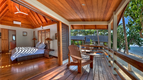 Ocean breezes rustling palms and the sounds of offshore reefs. Oceania has a large airy feel and is suited for couples or a family with room for optional bunk beds. Oceania has one main bedroom with a King size bed and provision for two extra single beds. The villa faces the sea and has a balcony in the sand over looking the beach.